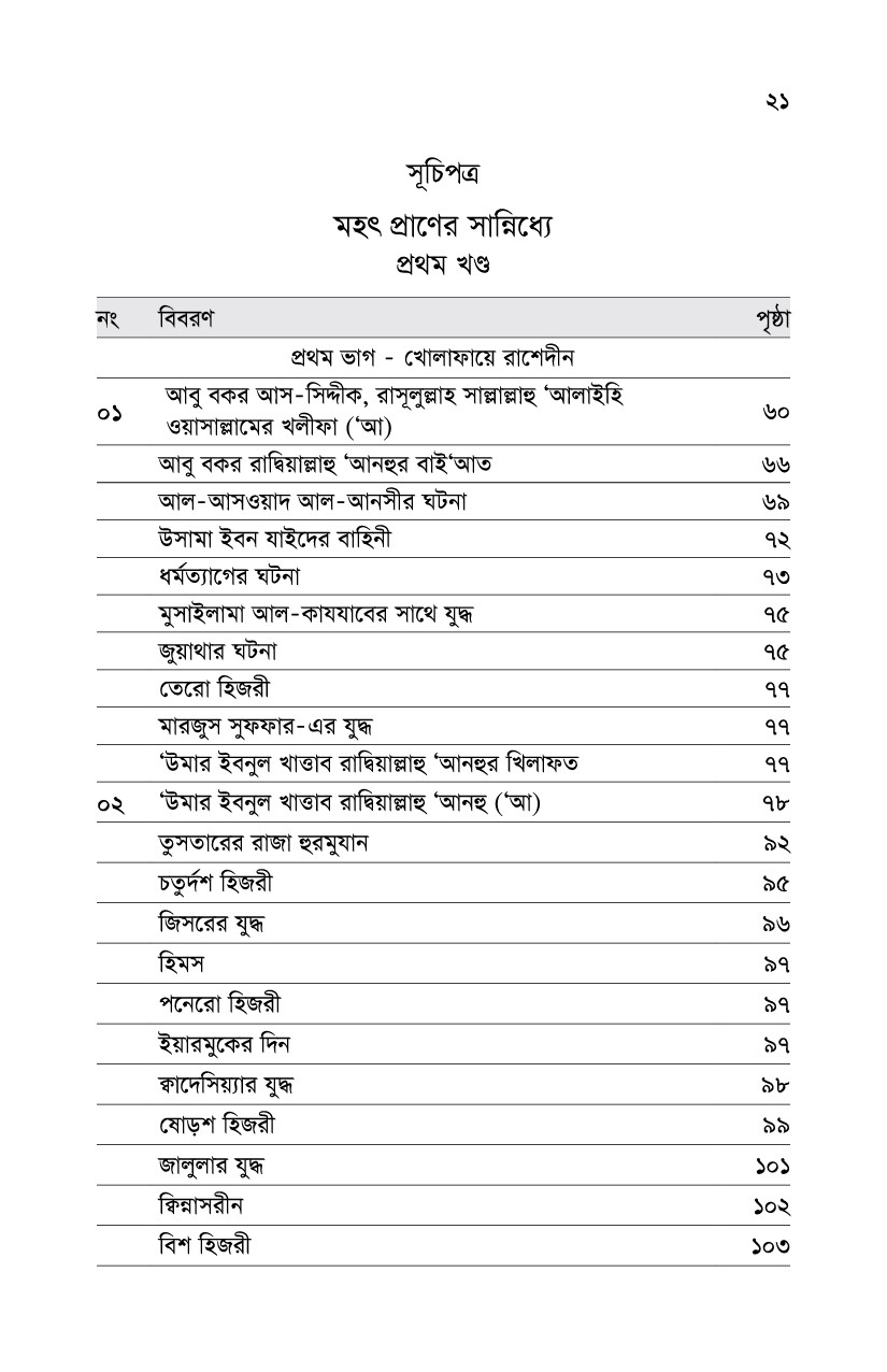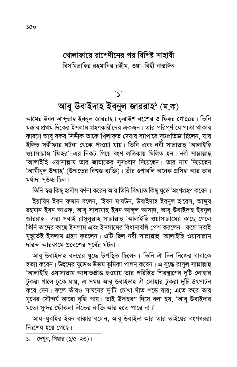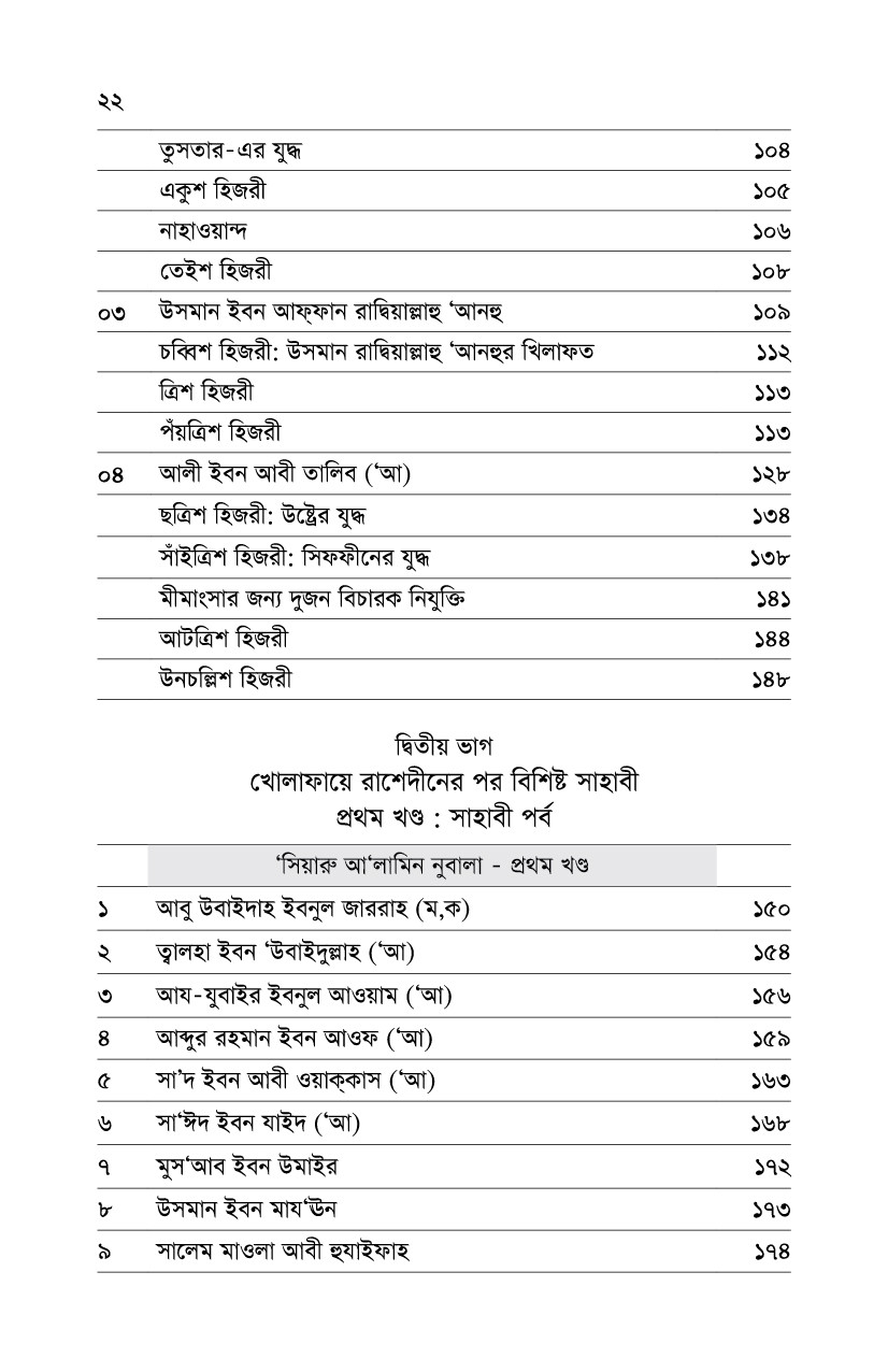 সাহাবীদের থেকে শুরু করে শেষ নাগাদ এসেছেন। বইটির সংক্ষিপ্তরূপ বেশ কয়েক