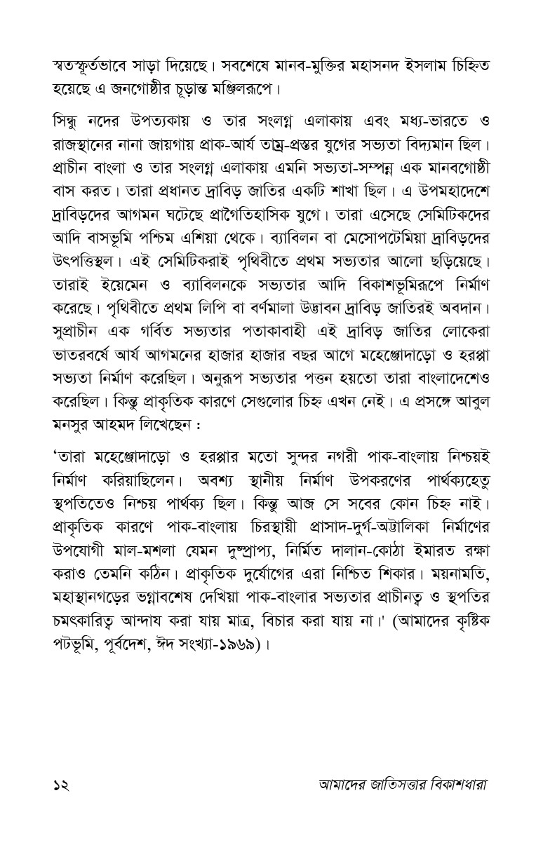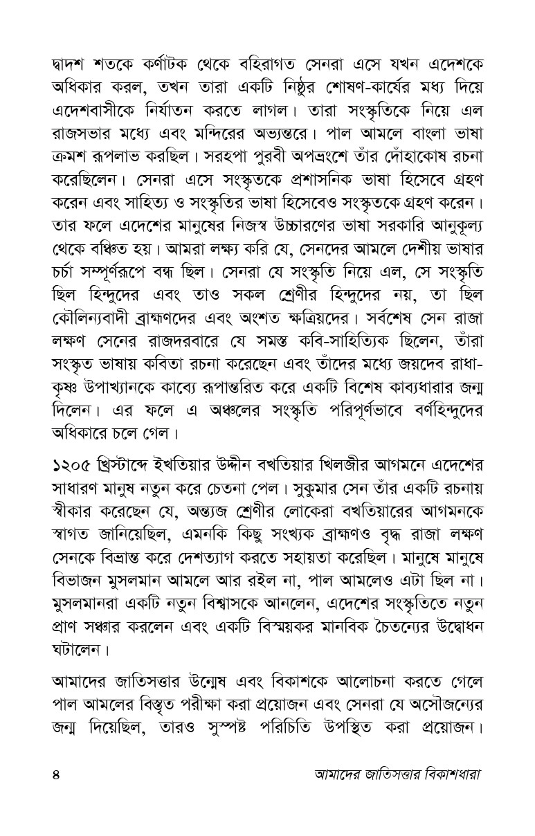 "আমাদের জাতিসত্তার বিকাশধারা" বইয়ের ফ্ল্যাপের লেখা