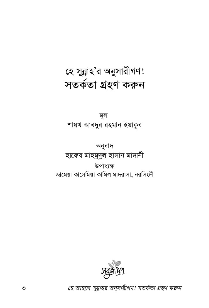 | Title | হে আহলে সুন্নাহ'র অনুসারীগণ! সতর্কতা গ্রহণ করুন |