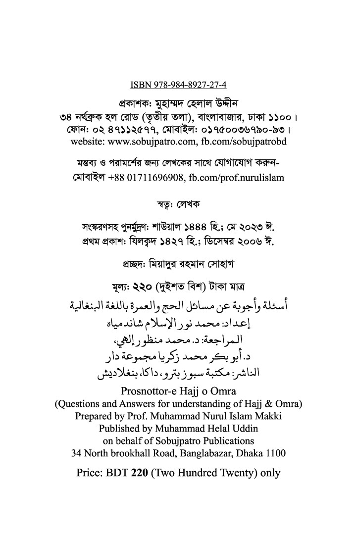 | Title | প্রশ্নোত্তরে হজ্জ ও উমরা |