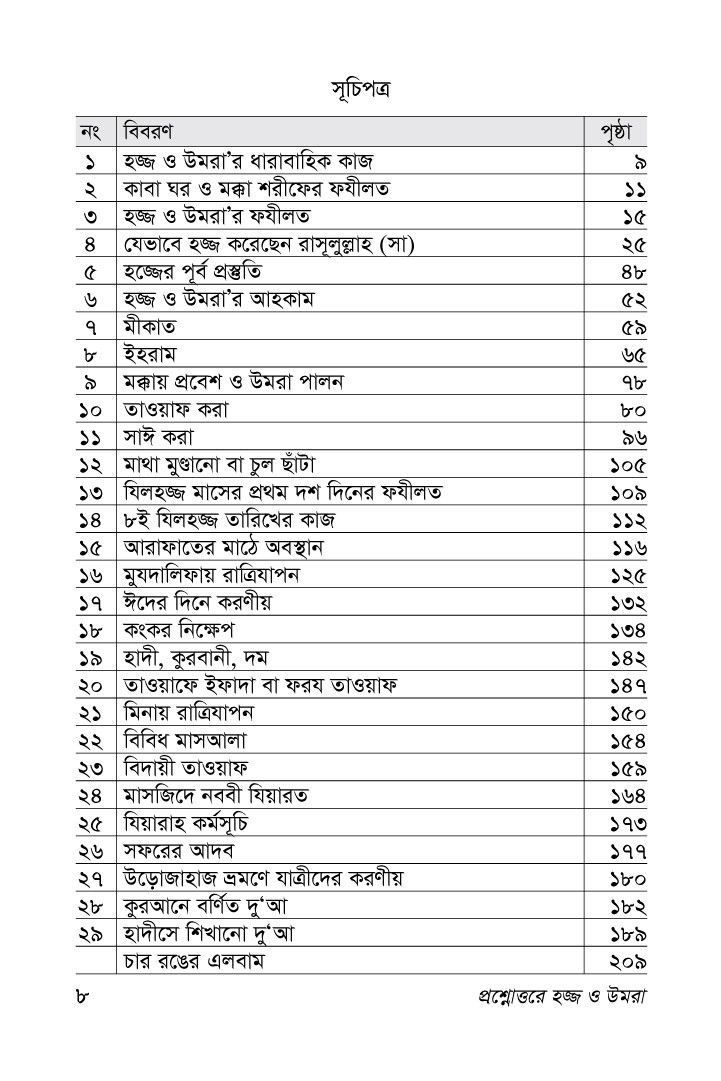 "প্রশ্নোত্তরে হজ্জ ও উমরা" বইটির সূচিপত্র: