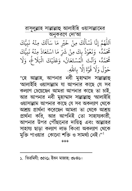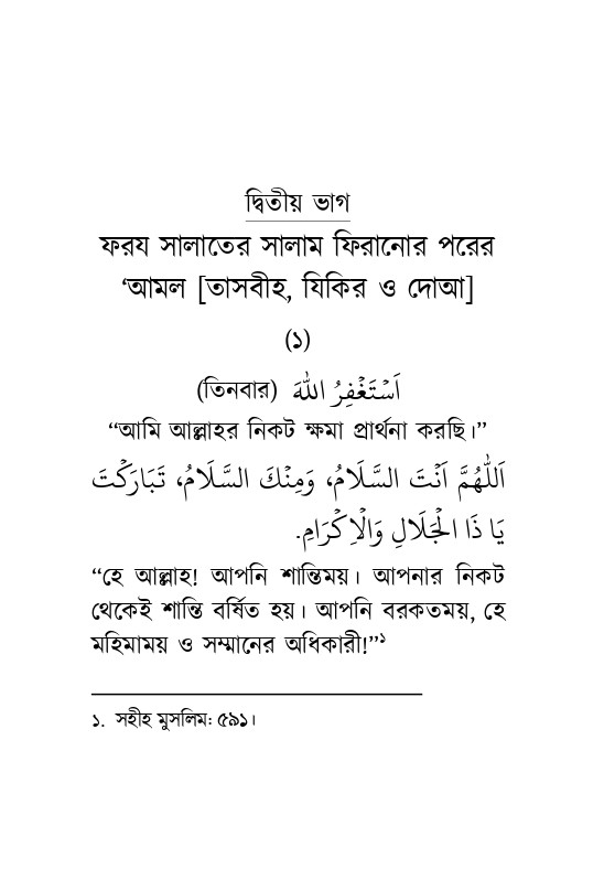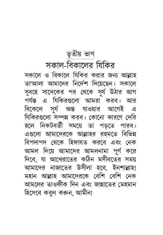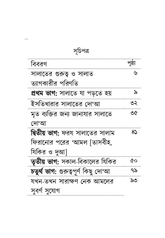 এতে রয়েছে অর্থসহ- সালাতে যা পড়তে হয়, ফরয সালাতের সালাম ফিরানোর পরের 'আমল [যিকির, দোআ, আসবীহ], সকাল-বিকালের যিকির, গুরুত্বপূর্ণ কিছু দো’আ। রেফারেন্স ও প্রয়োজনীয় ক্ষেত্রে ব্যাখ্যাসহ ছোট্ট কলেবরের পুস্তিকাটি সঙ্গে রেখে আমলের জন্য উপযোগী হবে, ইনশাআল্লাহ!