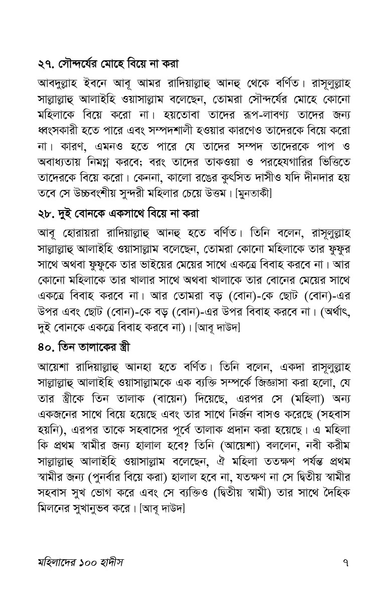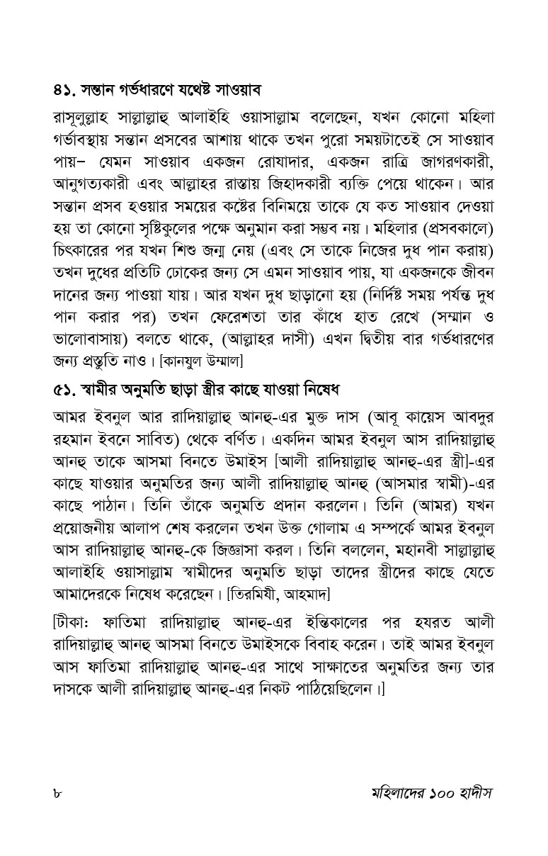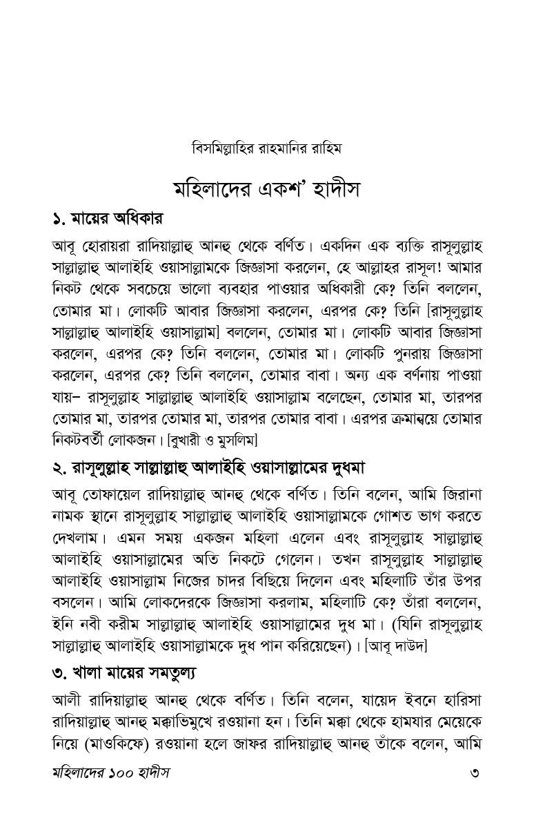 | Title | মহিলাদের ১০০ হাদীস |