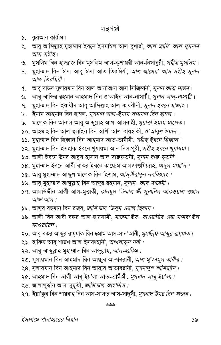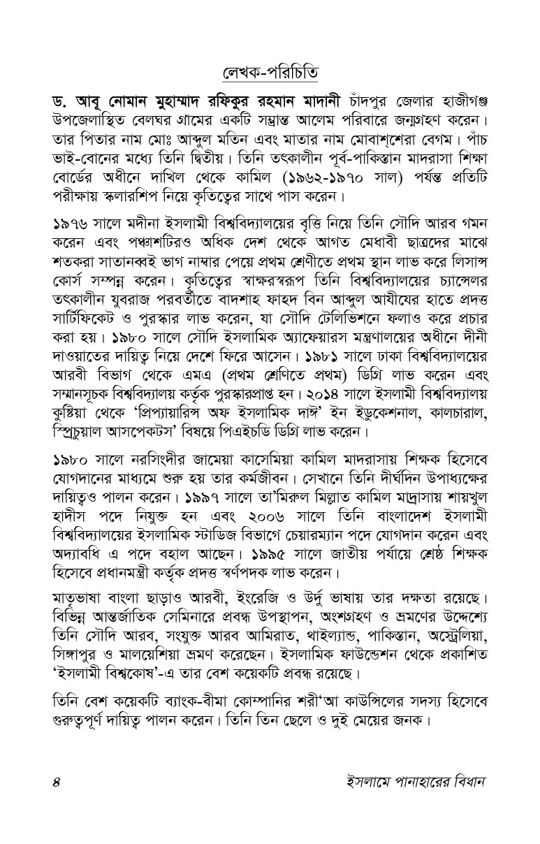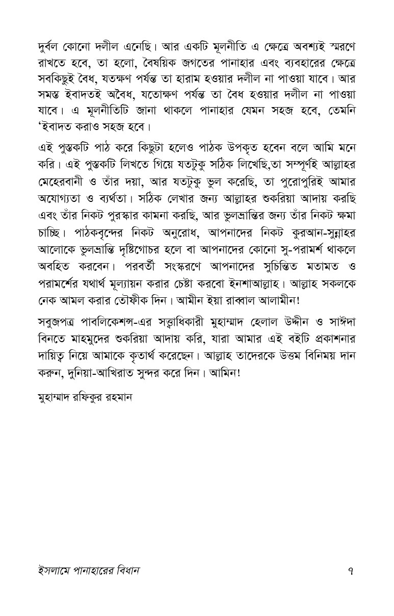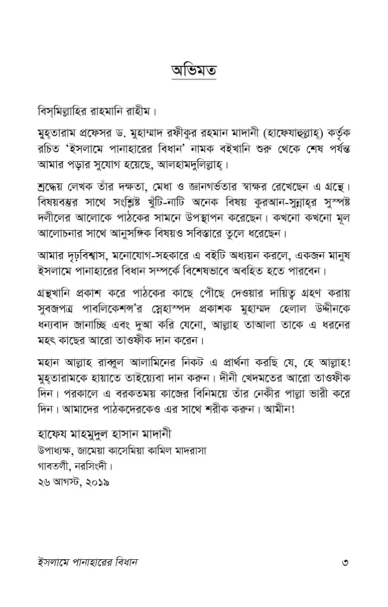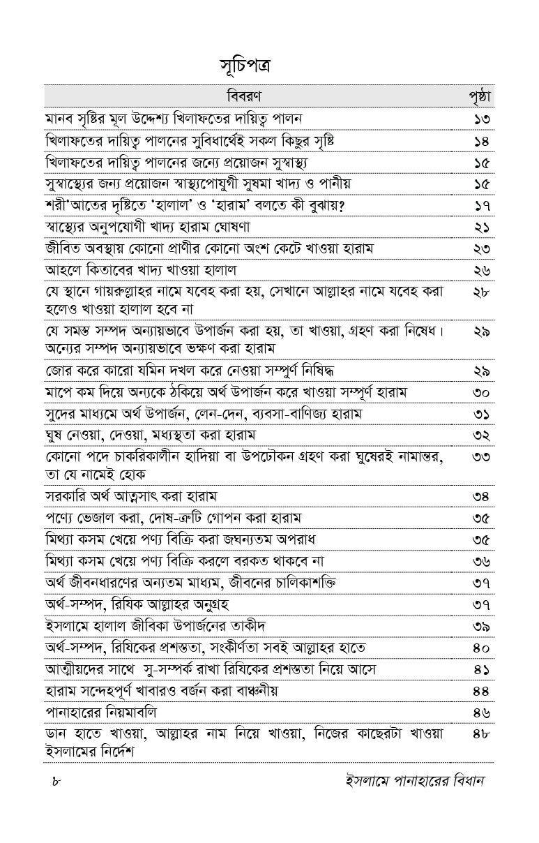 এ গ্রন্থখানি থেকে সুধি পাঠক পানাহার সম্পর্কিত পূর্ণাঙ্গ ধারণা অর্জন করতে পারবেন বলে আমরা আশা করি।