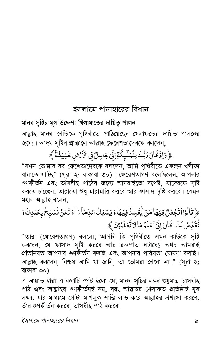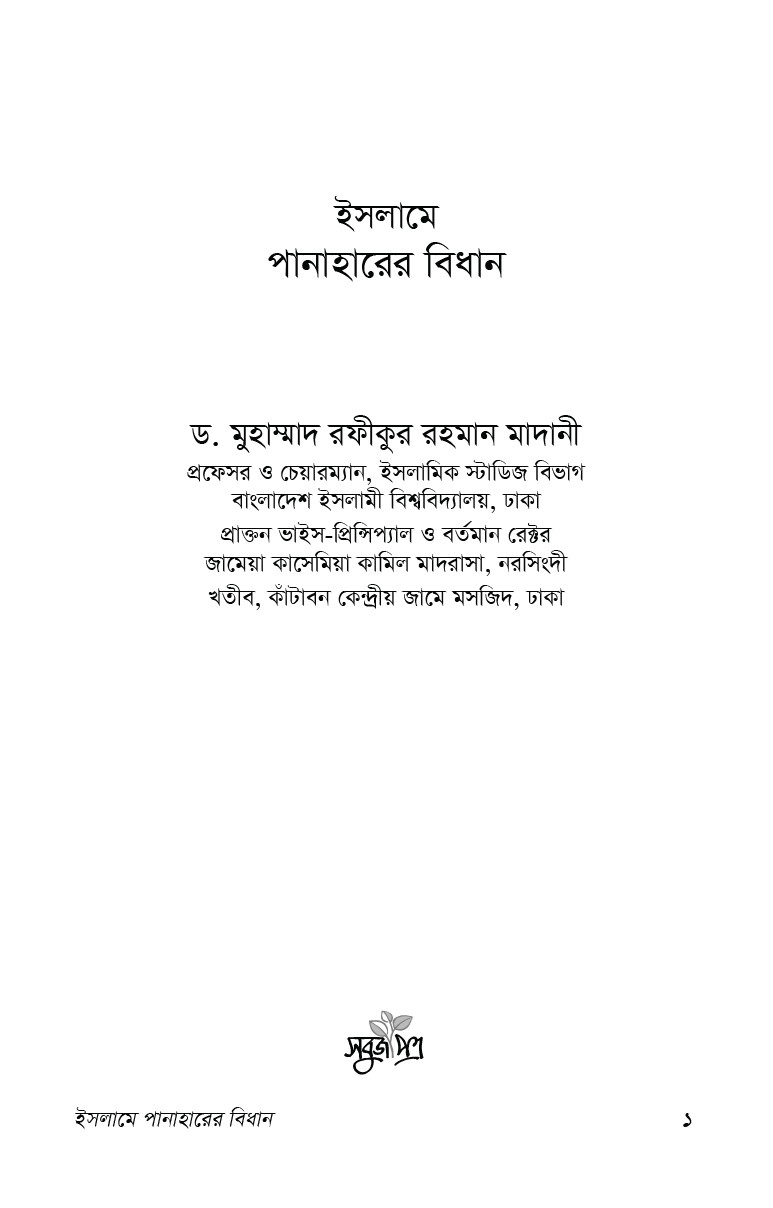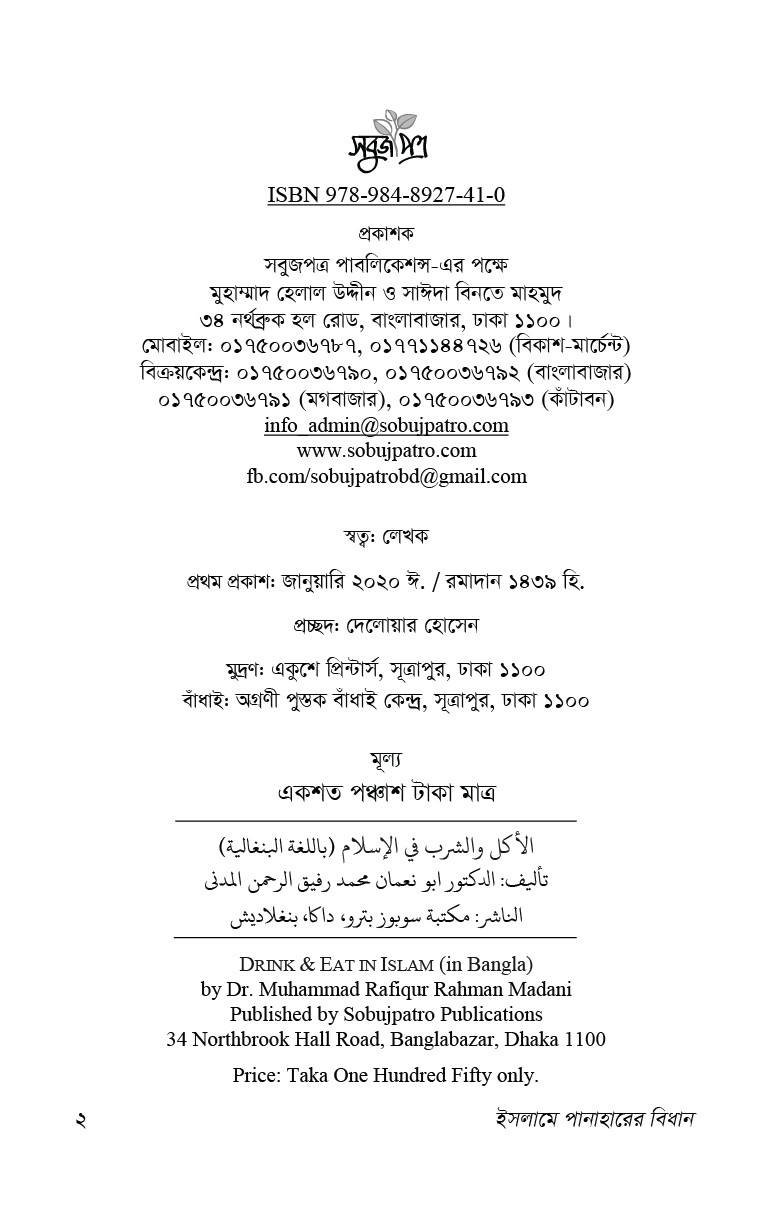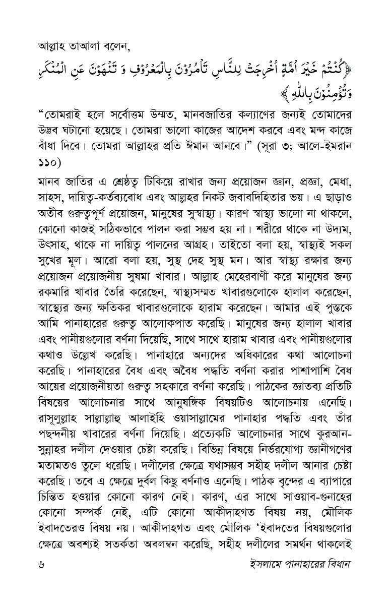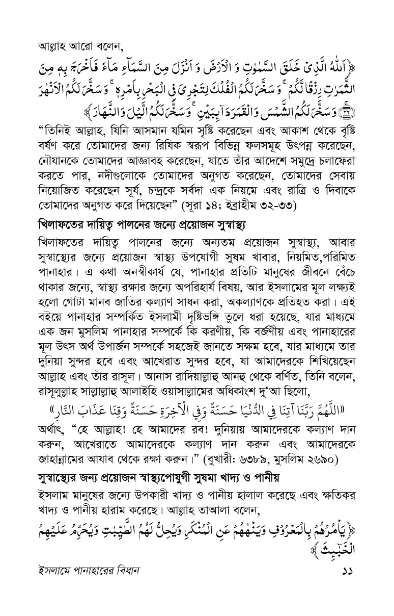 এ গ্রন্থখানি থেকে সুধি পাঠক পানাহার সম্পর্কিত পূর্ণাঙ্গ ধারণা অর্জন করতে পারবেন বলে আমরা আশা করি।