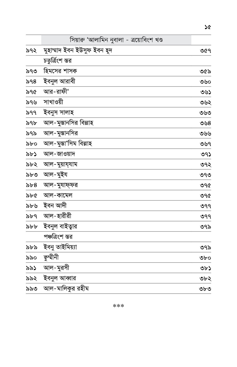 ‘সিয়ারু আ’লামীন নুবালা’ ইমাম যাহাবী রাহেমাহুল্লাহ রচিত মুসলিম মনীষীদের জীবনীর বিশ্ববিখ্যাত গ্রন্থ। আরবী ভাষায় পঁচিশ খণ্ডে প্রকাশিত এই গ্রন্থে ৫৯২৫টি জীবনী রয়েছে। সৌদি আরবের শাইখ মুহাম্মাদ মুসা আশ-শরীফ এ দীর্ঘ কিতাবকে সাধারণ পাঠকের কাছে মাত্র চার খণ্ডে পেশ করেছেন, যেখানে ৯৯৩টি জীবনী স্থান পেয়েছে । যাদের জীবনী থেকে শিক্ষণীয় কিছু পাওয়া গেছে, তাদেরকেই তিনি অন্তর্ভুক্ত করেছেন। সংক্ষেপিত সংস্করণের নাম দিয়েছেন, ‘নুযহাতুল ফুদালা’। মূল বইটিতে চার খলীফার জীবনী নেই, তাই ইমাম যাহাবীর ‘তারীখুল ইসলাম’ গ্রন্থ থেকে সেটুকু নিয়েছেন। তারপর সাহাবীদের থেকে শুরু করে শেষ নাগাদ এসেছেন।