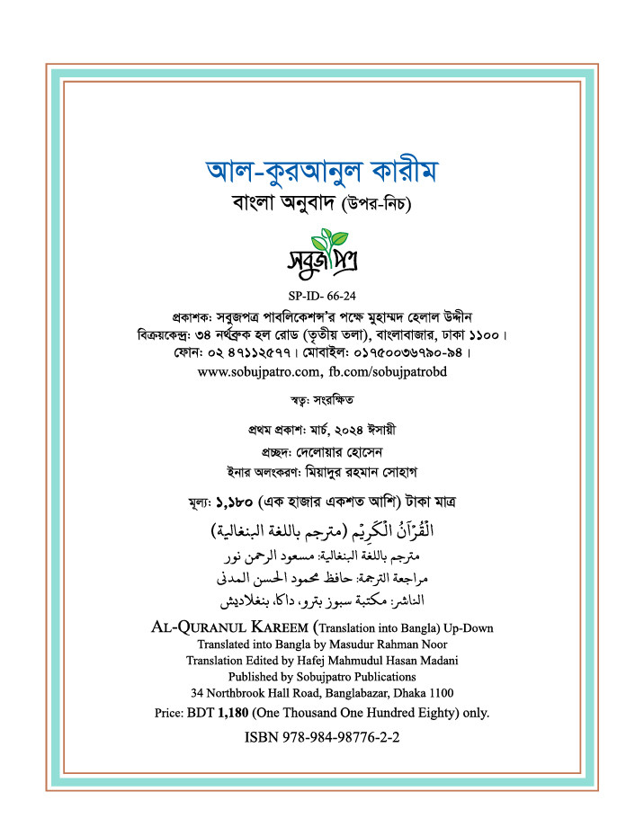 | Title | আল-কুরআনুল কারীম : বাংলা অনুবাদ (উপর-নিচ) |