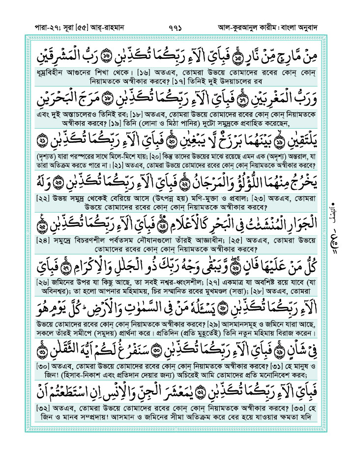 আল-কুরআনুল কারীম : বাংলা অনুবাদ (উপর-নিচ)