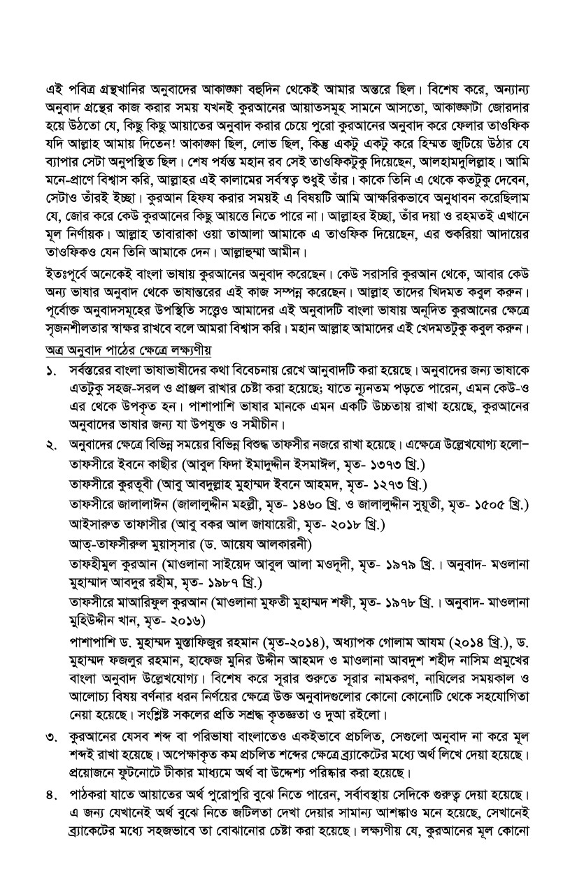 ২. অনুবাদের ক্ষেত্রে বিভিন্ন সময়ের বিভিন্ন বিশুদ্ধ তাফসীর নজরে রাখা হয়েছে। এক্ষেত্রে উল্লেখযোগ্য হলো- তাফসীরে ইবনে কাছীর, তাফসীরে কুরতূবী, তাফসীরে জালালাঈন, আইসারুত তাফাসীর, আত্-তাফসীরুল মুয়াস্সার, তাফহীমুল কুরআন, তাফসীরে মাআরিফুল কুরআন। এসব মহান খেদমতের সাথে সংশ্লিষ্ট সকলের প্রতি সশ্রদ্ধ কৃতজ্ঞতা ও দুআ রইলো।