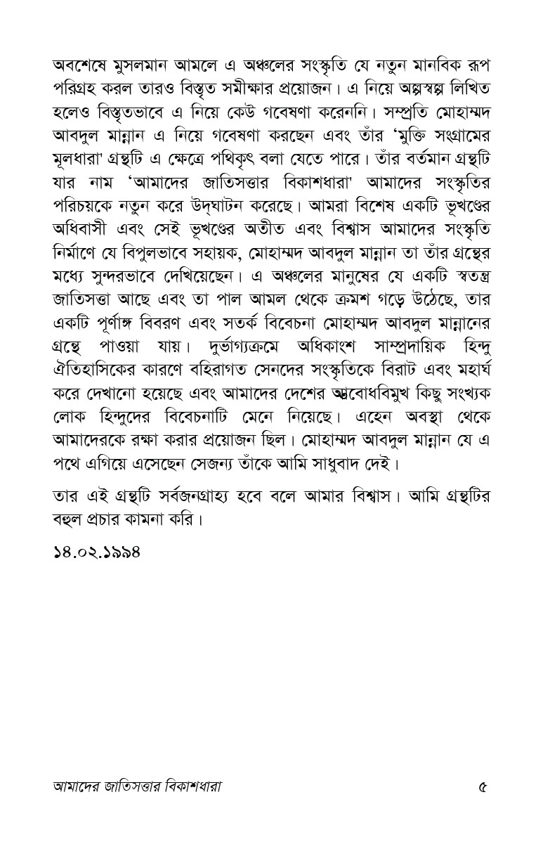 "আমাদের জাতিসত্তার বিকাশধারা" বইয়ের ফ্ল্যাপের লেখা