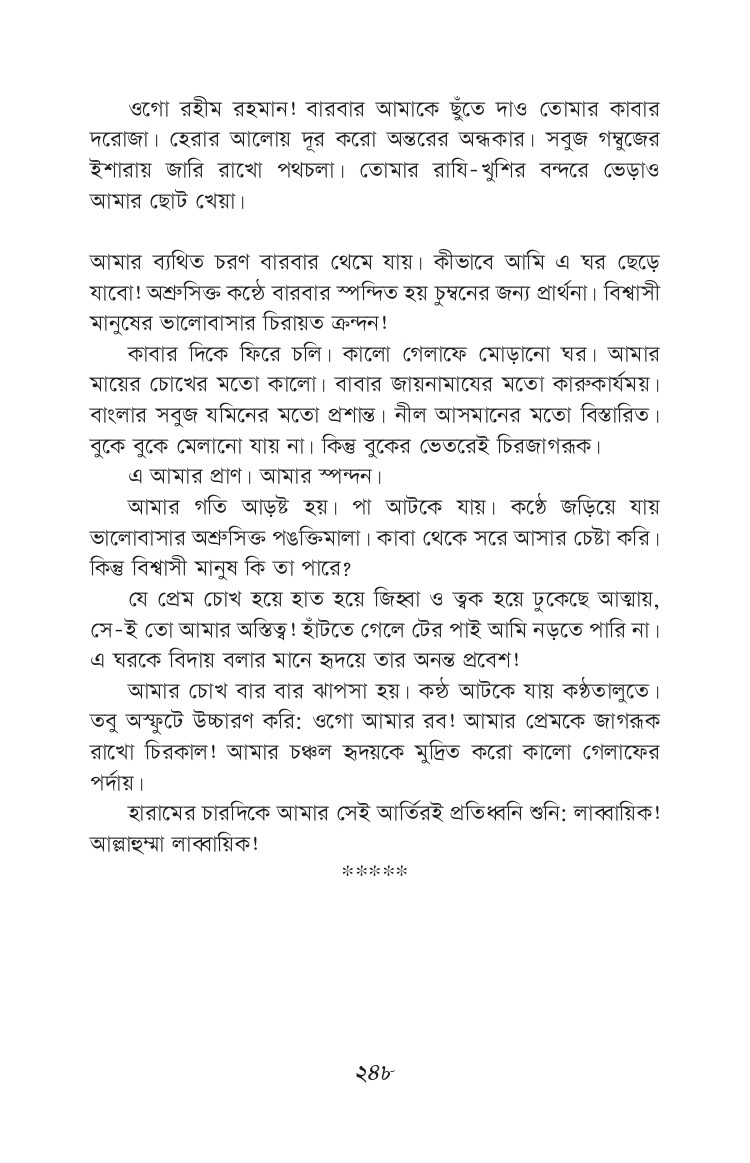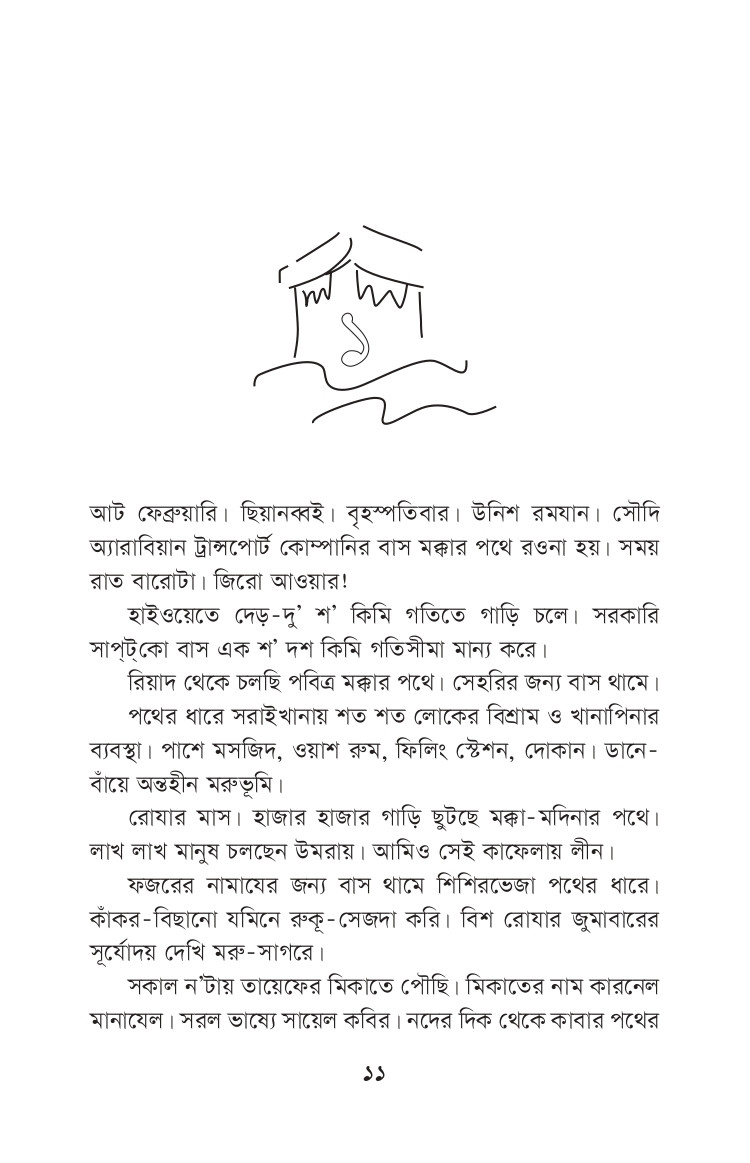 ভ্রমণকাহিনীর ধাচে রচিত এ গ্রন্থে রয়েছে, সাংবাদিকতার চোখে দেখা মক্কা-মদীনা, তায়েফ প্রভৃতি নগরীর বিবরণ। সীরাতগ্রন্থের দৃষ্টিতে তাকালে এতে পাওয়া যাবে, হযরত ইব্রাহিম-ইসমাঈল আলাইহিমুস সালাম ও মহানবী সাল্লাল্লাহু আলাইহি ওয়াসাল্লাম-সহ অনেক নবী-রাসূলের উজ্জীবনী ইতিহাস। নিজেকে সমর্পনের সাবিলীল ভাষায় লিখেছেন, “নিজেকে দেখি কালো গেলাফের আয়নায়। কী আমার পরিচয়? কিসে সাফল্য? কী আমার পুঁজি? আত্মজিজ্ঞাসায় ক্লান্ত আমি।”